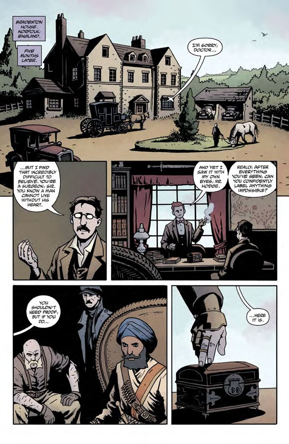 And here’s where we depart the comic and return to the novel. In June of 1919, Lord Baltimore arrived in the village of Korzha in Romania. This village had been claimed by one of the Old Ones and it had taken up residence in the local church. This story was told through an incomplete journal of Lord Baltimore’s and a letter from a villager in Korzha, Iancu Vulpes, so it was a fragmented account. Vulpes’s letter said that Baltimore had learned something from the vampire he had killed that made him leave the village in great haste (presumably to head to London). Here too was revealed a way to cure those that had been made sick by the plague, by boiling the vampire’s heart in water and feeding the broth to the sick.