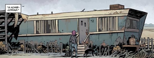 All that was back in March. When we catch up with Fenix again it’s August, so she’s been on her own for a while, steadily making her way back to her former home. We’re only two issues into this five-issue arc, but I’m already loving it. It’s a welcome change of pace, with a real focus on characters, especially Liz and Fenix.