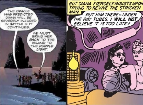 Lois Lane’s father General Sam Lane proposes to the president that the US government should publicly reveal its involvement in the Supermen Theory. The general believes that if people knew some metahumans to be creations of their nation, their faith in the heroes would be restored. This is basically the opposite of people’s initial reactions to the claims that heroes such as Firestorm would be government puppets, and the president refuses Lane’s idea too. The two wonder whether the Amazons will arrive to help Diana. The Amazons talk about purple light, which refers to the light of the Purple Healing Ray, a piece of Amazonian healing technology that can bring a person back from the dead.
