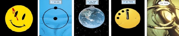 Adrian Veidt quotes Joyce Gulino’s final line in ‘The Adjournment’ while watching the cacophony of television channels. The snippet about the breaking dam could be seen as an allegory for refusal to take action before the doomsday has already arrived and hopeless plans to save the situation. Veidt goes to visit his prisoners Johnny Thunder and Saturn Girl – a man from the past and a girl from the future.
