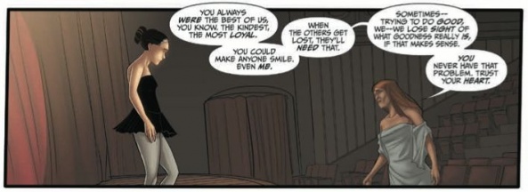 So she performs for Jade. We don’t know what ballet she is performing (I asked Joe, and he replied that it was nothing specific), but she seems to be performing it specifically for Jade. The question I would ask here is, what role is Jade in this situation?