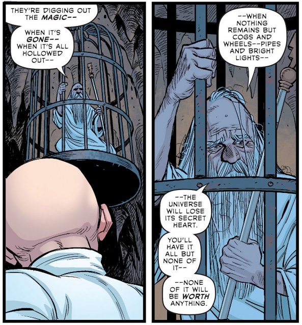 We also get a re-iteration of the idea that comics are the events of another universe being told via stories, which Sivana apparently picks up on right away. Why I find this interesting, though, is that there’s no really clear influence of the Gentry in this issue; previous issues marked the Gentry with either direct references, allusions to doors and someone knocking on them, but Sivana’s actions seem so self-absorbed that I struggle to find where someone is reaching out to him and influencing events.