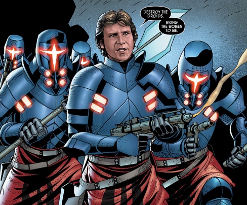 In a moment that makes me think that maybe Kieron Gillen isn’t entirely comfortable writing Han Solo, Han almost attempts to become king of the Galaxy before being quickly talked out of it by Sanna and then de-symbioted. It’s a strange detour and, again, makes me think that Gillen and Aaron built this story around the storybeats with Aphra and Luke and just kind of had to give the rest something to do.