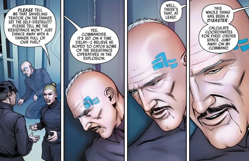 This is a small thing because, as I’ve said, there’s not a whole lot going on in this annual, but I believe this is the first time I’ve seen the orange jumpsuit of an X-Wing pilot being used to keep them alive in the vacuum of space. It’s something I’ve always been interested in seeing as it really militarises the pilots of the Rebellion and the Resistance, but rarely utilised in stories.