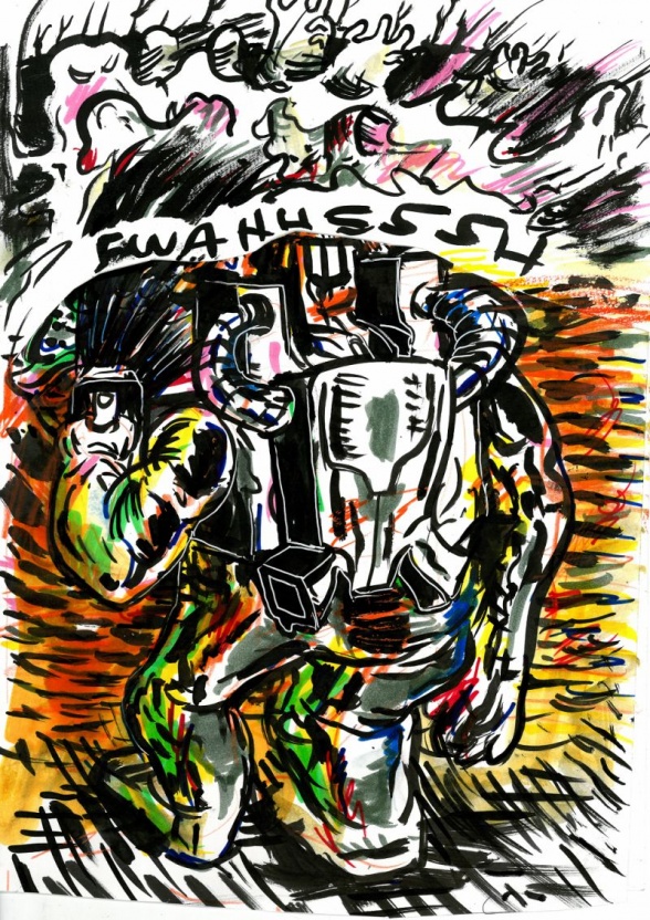 Josh Bayer is an artist and an educator, currently teaching comics and fine art at various locations in New York City. He is about to release “Theth,” the first book for Retrofit Books (run by friend of the site Box Brown) to have a spine. He is also the editor of “Suspect Device,” an anthology that…well, you really have to see it to understand. You can check out his website, his Tumblr, his blog, and follow him on Twitter (@MrJoshBayer).