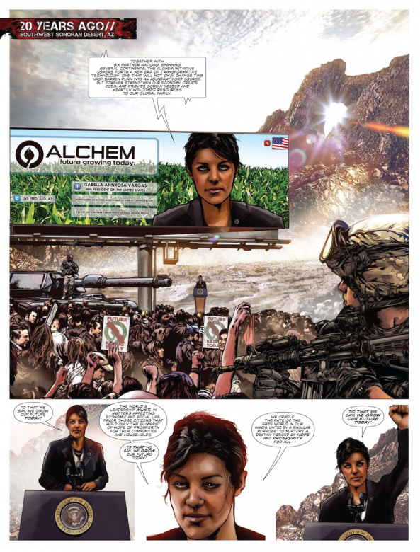 With that in mind, we’ve teamed up with Tim and Mehdi to serialize the entire graphic novel on this here website, originally published through Image/Shadowline. Every day we’ll be posting a single page from the book to start your day off the way every day should – with gorgeous artwork and giant horrible monsters. What more could you possibly want?