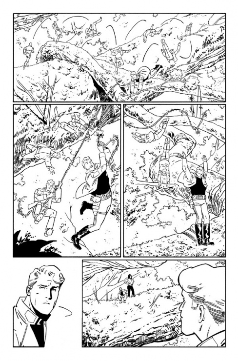 Reading this book, it’s clear that your art is very simpatico with the characters and concept, especially the lantern-jawed, almost always smiling lead. You mentioned Al Williamson before, but both inside and outside of comics, who and what would you say are the biggest influences on your work as an artist, particularly for a project like this?