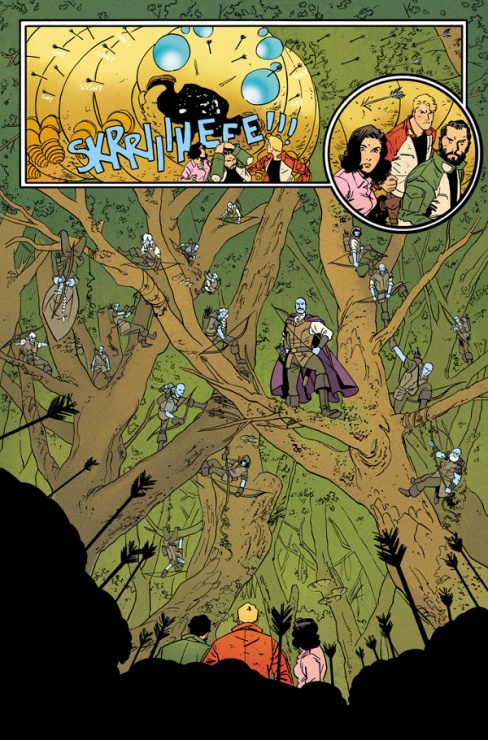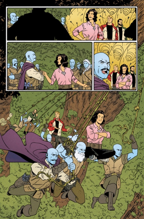 This first issue quickly takes readers through a number of new worlds, including the mega tree land of Arboria. When it comes to building these, how specific was Jeff? Was it more of a case where he said something like, “this planet has huge trees and flora and fauna everywhere!” and unleashed you to do what you do? Or was he very specific?