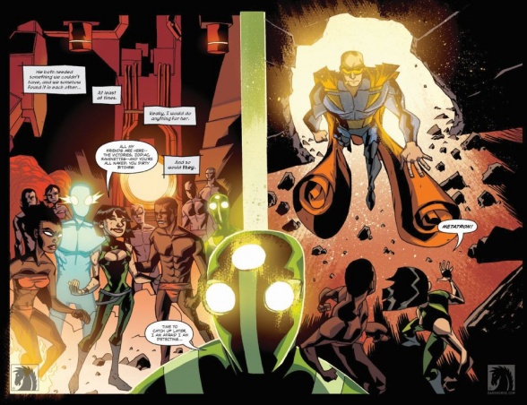 The Victories ongoing series was always planned as a sort of living thing. These three arcs, Transuman, Posthuman and Metahuman were all part of one large story. This is all I had planned out. When we get to issue 15 (which concludes 21 issues of Comics counting the first mini and a 3 part DHP story) you’ll see the story comes to a definite ending- that leaves an opening for a very different continuation should we choose to go on. However, I’ve been living with Victories for about 3 years from conception to release and I’m looking forward to doing something new, and certainly something less dark. Between Wild Rover and this, it’s been a lot pulling from the darkest recesses of my mind to write this stuff.