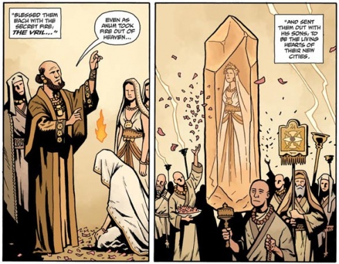 MM: Yeah… I don’t want to tell you that you’re never going to get that story… but, at least as far as I know, you’re never going to get that story. My feeling is that this stuff, this Hyperborean stuff, these people that were able to channel that Vril energy—and I can talk this stuff with you because you and Scott Allie are the only guys who even care about this stuff—but since we set up the fact that the survivors of Hyperborea trained this certain group of humans to be able to channel that Vril energy, I just figure some of that Vril energy has passed down just through certain bloodlines.