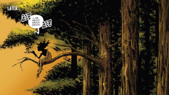 That was the reason I did it, to see if I could actually tell a story with those limitations. I actually in fact got cold feet and added some captions for place setting, but my original idea was that it would be a silent story and the only words in it were “I am Groot.” I was also very, very lucky to have Phil Jimenez, my old colleague, working on the art for that, and he did some very heavy lifting for me there. So, yeah, I think the “I am Groot” stuff really grew out of “Annihilation: Conquest” that we did after Keith’s “Star-Lord” mini.