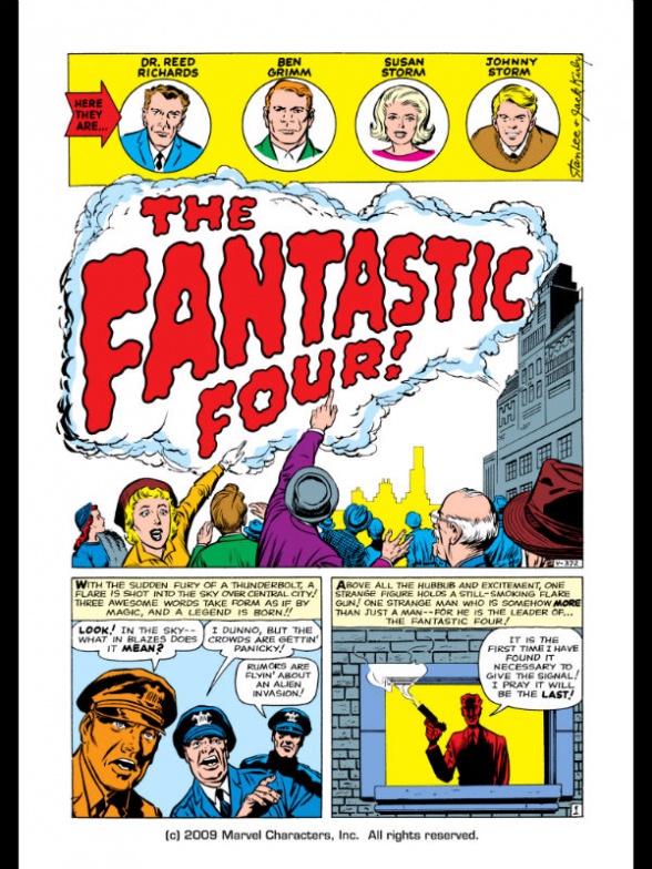 In their first appearance, the first family looked more akin to Kirby’s older, monster of the week, character. Reed’s owl like face and wavy ruffled hair is a far cry from his later, more filled out, square face and smooth, shiny hair. The Thing, while not displayed as The Thing on the page above, is depicted more as a melty mud-like creature, more akin to Clayface than a rock monster. He’s drawn, much like the Hulk was, in the style of his older monsters, thick, lumbering, and looking like he could melt at any moment.
