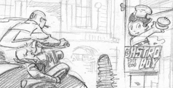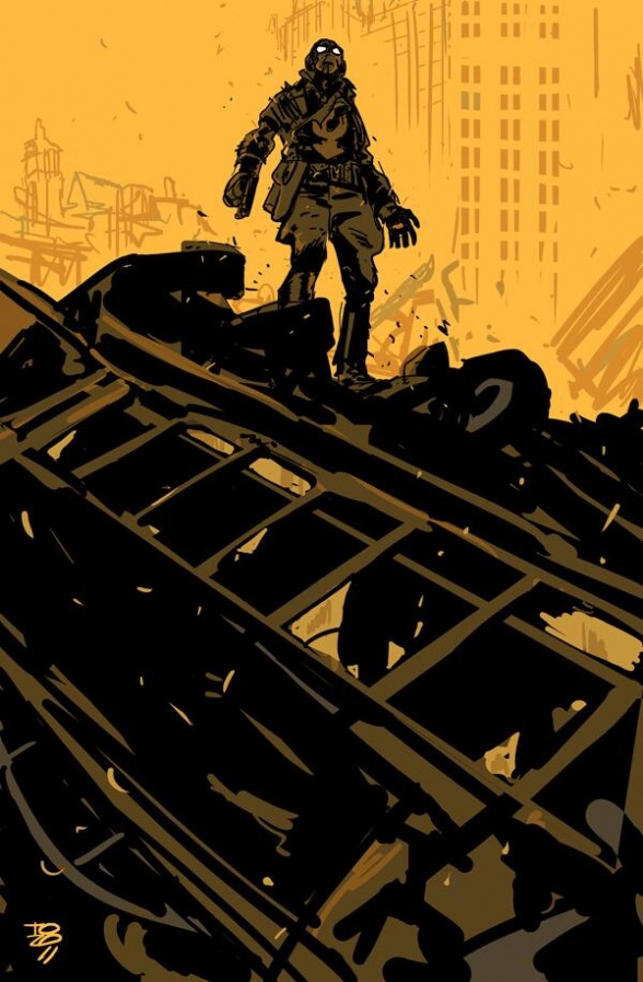 In Who Is Jake Ellis? I fell in love with his approach to colour, the way each scene had a distinct and very immediate mood, and the way he handled action, especially in the car chase in issue 2. Then he came aboard Lobster Johnson, and I fell in love with the way he drew the 1930s and the reporter Cindy Tynan. Then along came Caput Mortuum and I fell in love with the way he drew faces, especially those two guys in the cinema at the beginning. In Get the Lobster I was struck by the way he used shadows, and in Zero #9 I was blown away by the way an environment could be used to such powerful effect to externalise visceral emotions. With every new cover I appreciate his sense of design, and his layouts are distilled down to such elegant simplicity.