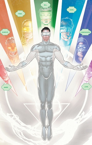 At the tail end of Tony Bedard’s run on “Green Lantern New Guardians,” Kyle was bestowed the White Lantern ring, and cemented himself as something entirely new in the universe. He was granted this ring after mastering all 7 rings of the emotional spectrum and is still learning just how powerful this ring can be, but knows he can heal others with it, as well as create constructs.