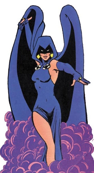 Continued belowThis one sort of speaks for itself – Raven is a magical being who, over the course of her history, has been on both sides of the moral code, sometimes a Titan, sometimes breaking up a Titan’s wedding (see Starfire’s entry), but always doing it with mystery and magic.