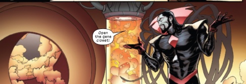 Lucas Werneck’s art in this series is fantastic. Werneck is really focused on fleshing out the expressions of the characters to match with Gillen’s nuanced scripts. Werneck draws more angular lines that allow the issue to have a more cartoonish aesthetic. At first, this switch seemed jarring due to the serious nature of Gillen’s scripts, but importantly Werneck is able to capture all the silly moments from Gillen’s writing with ease. There are so many funny moments with Mr. Sinister reacting to something in the background that another character said that is enthralling to look at on the page. Werneck is great at portraying action on the page as well. Werneck shows off movement on the page incredibly well as Sinister teases a character before getting punched. When the time calls for an important or fluent moment in the series, Werneck is able to adjust his style in order to ensure that the plot moment looks appropriate for the page.