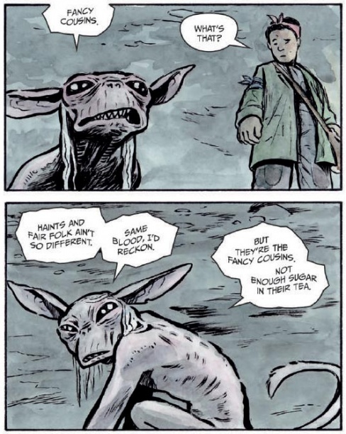The world of Harrow County spans a number of series, including the original “Harrow County” and “Tales from Harrow County”, the spinoff series of which this iteration is a part (“Tales from Harrow County: Death’s Choir” precedes this story). The original story followed Emmy Crawford on the eve of her 18th birthday, a night when things went absolutely sideways. It falls on her to protect and preserve her home from the forces of darkness and chaos that slink in when the sun goes down. The eponymous Harrow County sits somewhere in the sleepy southern United States, and is filled with sleepless denizens: ghouls, wights, zombies, and creepy crawlies galore. It’s the 1930s, and everything is a little quaint and a whole lot creepy. In these pages you’ll find goblins, necromancers, witches of different stripes and styles, and a whole lot more.