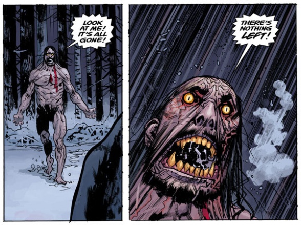 For me the big stand out moment in John’s “B.P.R.D.” work is the entire run from “The Universal Machine” through “Garden of Souls” to the last page of “Killing Ground.” Those three books seem to get better with every page, until you arrive at that final splash page at the end of “Killing Ground.” Which, to this day, is one of my favourite moments in any comic I’ve read. Not only can he write the hell out of ferocious monsters doing awesome monster stuff, he has a real gift for writing human characters. Another one of my favourite moments is from the end of [the first issue] of “Killing Ground.” Abe Sapien is writing a letter while the view shifts across various members of the team. Johann is in his brand new physical body lying in bed surrounded by junk food and porn. Both hilarious and poignant.