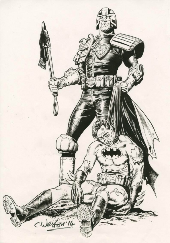 This came courtesy of Mr. Chris Weston and is a flipping treat to look at. Judge Dredd/Batman is now available in softcover, you know.
