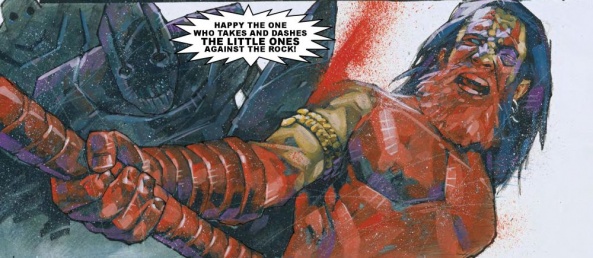 Mills, Davis, and De Ville have thrown us back into the world of “Slaine” in style with this uncompromising opening arc, and I’m totally onboard to see what they have in store next. As long as it’s bloody, vicious and glaring, they can throw whatever they want at me.
