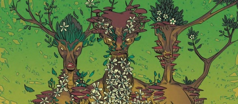 There’s an elegiac sense to Culbard’s framing as Wren tells her story. Edginton tells us out about the infant she lost, while the art focuses on the cracked and weathered cog that acts as a grave marker, sitting half-submerged in a swamp. We see the freshly shorn locks of Septimus’s hair falling to his feet, as Wren recounts his inability to deal with the grief sending him in a retreat back to the faith of the Prime Numbers. A panel of proud new parents cradling a newborn are instantly juxtaposed with the moment they encounter the unthinkable. It’s heavy stuff, but never overly sentimental.