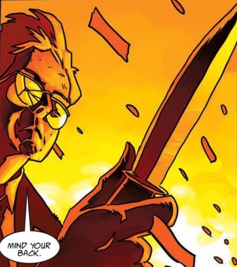 Greg Lincoln: After that curious mysterious twist that came with the end of last chapter you might have been expecting a Grant Morrison like “fourth wall” breaking after deaths experience but it’s not what Edginton gives us. We are in fact treated to an explanation of the “Kingmaker’s” world setting from the unlikely visage of, um, perhaps Kurt Vonnegut. The sweater clad human lays out what essentially happened to the race that originated on old earth and how they became the progenitors of the current setting. This is all pointless to Crixus who really just wants to know what in the bloody hell he is not dead given the massive gap in his head. Given this chapter kind of breaks the narrative we were previously reading and grants Crixus a lot of personal power the reception to this chapter I’m sure will me mixed. Edginton implies a lot of interesting things about the world he and his collaborators created for “Kingmaker.” It will be interesting where this “gods” gift allows the story to head from here.