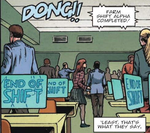 So far, so familiar: the satire bits are, sadly, rather familiar; likewise, the twist that leads us to the actual plot is rather stale (without spoiling too much – there’s an ongoing 2000AD strip that uses the same concept extensively). Still, I’m interested to see how James Peaty is going to bring these two things together – this certainly a more fertile ground and a good chance to combine the two things that often make 2000AD so good – social critique and non-stop excitement.