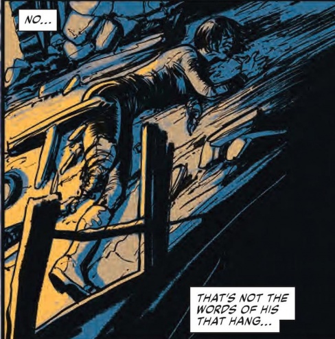 Holden shows a real knack for tracking Noam’s body in motion so that even when the backgrounds do drop out for a few spotlight panels the feeling and ability to track the chase that is occurring doesn’t go away.