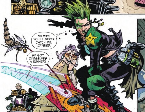 Christopher Egan: This week’s one-shot is a fun sci-fi adventure. While Judge Anderson and her partner are on patrol, they come across a local thug. Joni Reeves, who is known for tagging walls. Attempting to arrest her and sentence her to a few weeks for the graffiti, she evades them, leading to a chase across Mega City One. After a Back to the Future Part II style hoverboard chase, the Judges lose sight of Joni, but come across a peculiar case in one of the Mega Blocks.