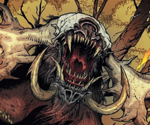What’s so interesting, structurally, about “Thistlebone” across its two stories is that there isn’t a traditional antagonist that unites the stories. The villain is the very idea of Thistlebone, and what that idea makes people do. Yes, we’ve seen things like skulls in trees, and people have seen visions of monsters, but all of that seems secondary to the evil of the people who choose to believe and follow in the footsteps of the supposed spirits of the woods.