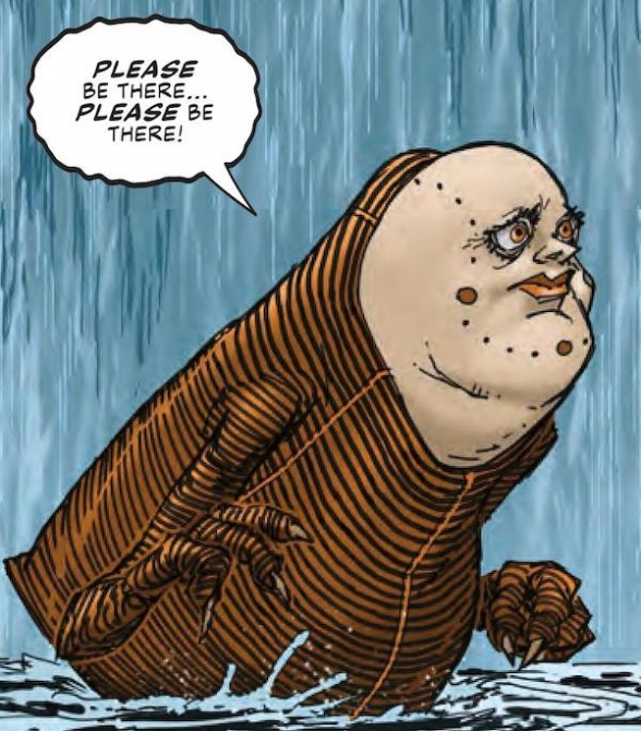 Jake Lynch’s art continues to work on the edges of disturbing, never quite going all in on the weirdness, but getting pretty damn close. The characters are rolypoly little creatures who Lynch makes look almost cute, but still retaining enough alien nature to be off-putting. This chapter, Lynch gets to draw a couple of spacecrafts, and does a phenomenal job distinguishing between a junky one and a more impressive ship. This may sound like a small detail, but so many times in sci-fi stories, everything looks so futuristic that the classification between ‘good’ and ‘bad’ doesn’t really make sense outside of the context of the story. But here, anyone could tell that the sleek, metallic ship is a better vessel than the barrel with boosters on its back.