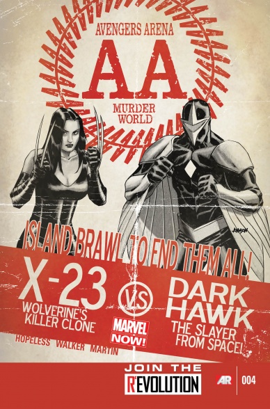 First off, people may be hating on this book, but I think it’s great. Dennis Hopeless is doing a really amazing job with it, stitching together a group of disparate characters only associated with each other because they’re a) young and b) captured by Arcade, and he’s making it work incredibly well. Not only that, but holy crap, he has Dave Johnson on covers, and I love the simplicity of this boxing/wrestling bout styled poster. As a cover, it’s a great way to convey the types of things going on in this book (even if that may or may not have actually happened in this issue), and his color palette and simple design makes it unique in a way that really stands out on the racks. I know, I know, Dave Johnson getting props here? Shocking, right?