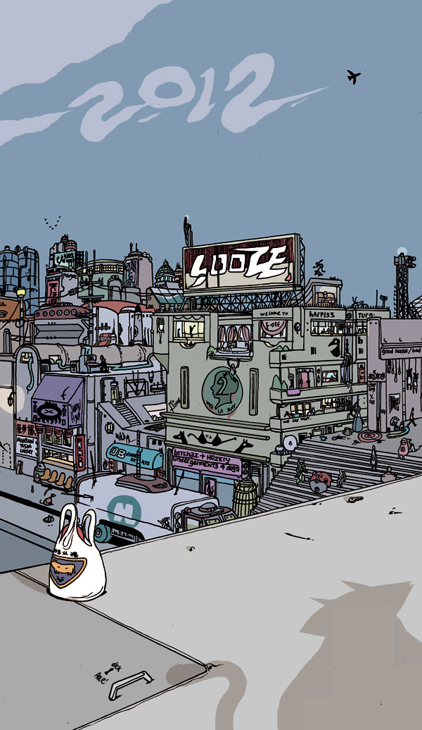 While I’d be lying if I said that it didn’t remind me a little of the King City teaser from earlier this year (just in how it angles off the roof and displays the city), this is still another wonderful example of Brandon Graham’s art. Just look around the page and drink in the details. Even if you just focus on the dining area, there are all kinds of fun bits, but when you expand out you can see the world he creates in the process. For me, one of the best things Graham does is he makes your mind fill in the gaps in the world. I immediately start imagining the rest of the building the characters are upon, what’s down the street below, etc. etc. And it’s just because of his exceptional imagination that this happens – he pushes readers to want more.