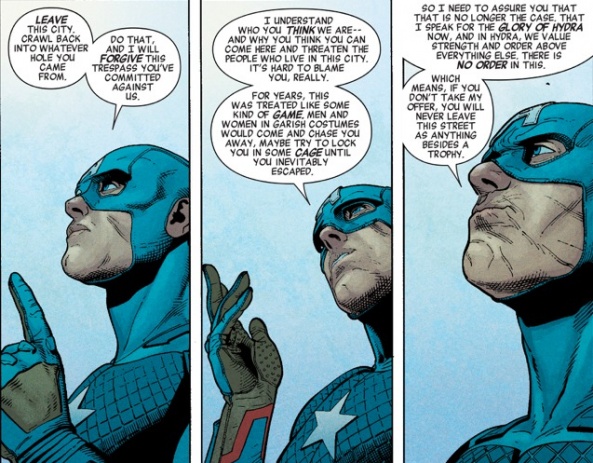 Another frightening aspect of HYDRA society is the rampant xenophobia and persecution of the Inhumans, which does reflect a very real threat facing Latinx and Muslim communi-