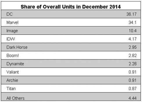 In the monthly “Previews” catalog, there are five publishers who warrant special sections ahead of the alphabetical listings that include the other eighty-odd publishers. They are: Dark Horse, DC, IDW, Image, and Marvel. Marvel even gets its own catalog, which can be purchased independent of the main book. Not only do they get preferential locations, they also get additional space for each listing. Many of the new or most popular titles get full pages to themselves, and in some cases multiple pages for previews. Other books typically get half a page, and rarely less than a quarter page. Together, these five account for about 85% of sales to the direct market. The favorable treatment for the top five, or rather the lack of it for the bottom eighty, can be seen as an indicator of who is big and who is small.