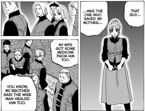 “To Your Eternity” #92: I know this is a serious scene and all but the only thing I could think when reading this was this quote from “Band Geeks:” “Squidward’s always been there for us when it was convenient for him!” – Elias Rosner