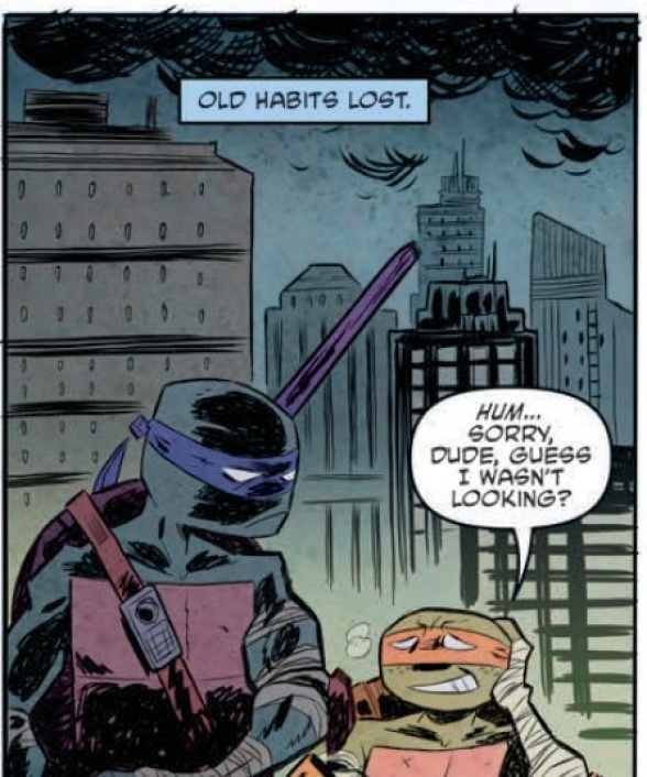 “Teenage Mutant Ninja Turtles” Annual 2022: Donnie’s right. Mikey’s attempts at making him feel better by face planting is nothing new. I wonder if he learned that from the Ghostbusters? – Elias Rosner