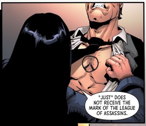 “Batman and the Outsiders” #14: Well, he could just be reaaally into “Overwatch.” … Should we be concerned that the League of Assassins’ symbol is that close to the “Overwatch” logo? – Robbie Pleasant
