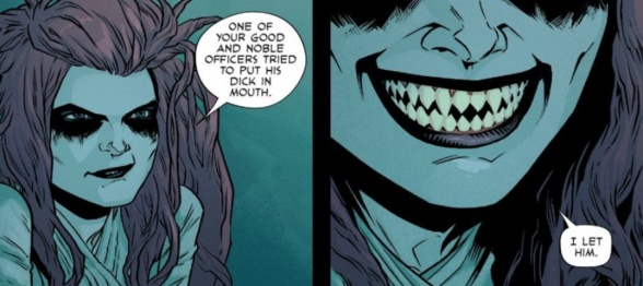 “Reaver” #1: I know everybody likes to see a rapist get their cumuppins but dear God, why would anyone stick their dick in that ever? I spend a lot of my time keeping sharp objects away from that part of my body. – Dexter Buschetelli