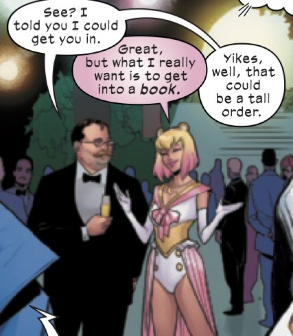 ”X-Men: Hellfire Gala” #1: Of course Gwenpool would go with a “Sailor Moon” inspired look, and the fact that this is all we get to see of her at the gala is criminal. – Robbie Pleasant