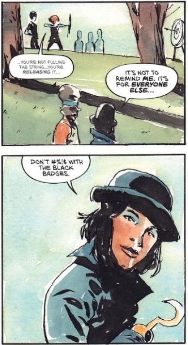 “Black Badge” #12: Also, she’s committed to the name “Hooka.” If she loses the hook, the name takes on a slightly different meaning. – Nick Palmieri