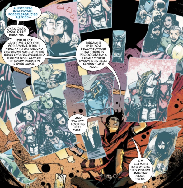 “Fantastic Four” #12: (from the “Future Foundation” back-up”) Your friendly-neighborhood PSA to call your depressed friends, family members, coworkers, neighbors, children, parents, community members, fellow churchgoers, gym users, trivia night attendees, and D&D cohort mates. They need it, they may want it, and they may not know how to ask for it. Take care of each other. – Kevin Gregory