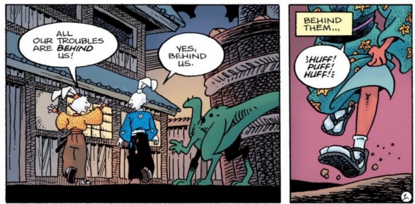 “Usagi Yojimbo” #22: His name is Troubles and his only job is to make sure statements like these NEVER end without an ironic twist. – Elias Rosner