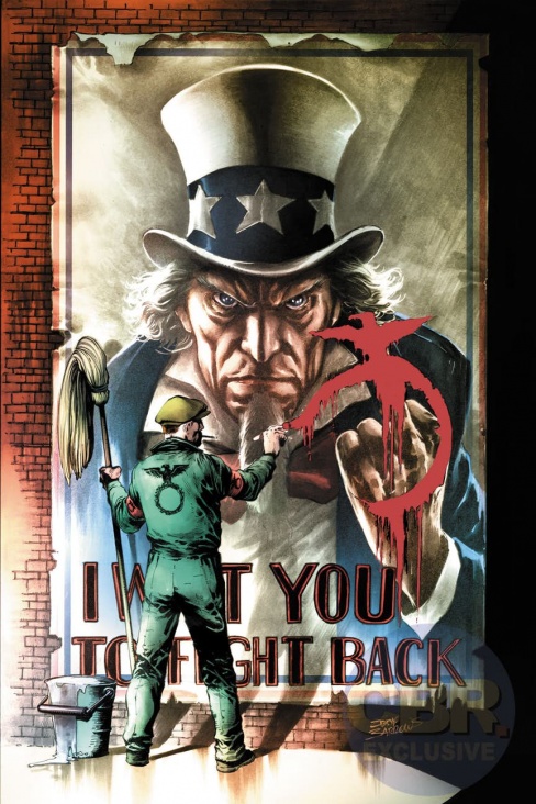 Fast-forward to the present day, and a new team of Freedom Fighters emerges to challenge the Nazi occupation once again. But if they’re to have any chance of victory, they’re going to need Uncle Sam—who disappeared after his original team was killed. The 12-part epic “Death of a Nation” storyline kicks off here!