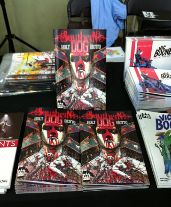 We joked about his cell phone that was made circa 1995, and I got to discuss his experience pitching Unknown Soldier to DC/Vertigo. Before I thanked him for his time, I handed him a copy of Southern Dog #1. Beyond the art and colors, he immediately recognized the quality in overall book design and looked forward to reading it.