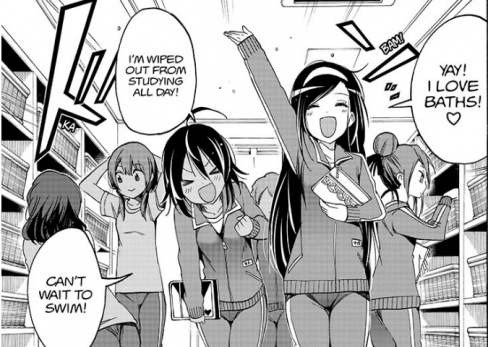 Now, we could have gotten some development on Yuiga and Ogata’s feelings after their accidental kiss last chapter, and it’s briefly addressed all of two times with no actual development from there. No, instead any chance of character development is discarded in exchange for another tacked on excuse for nudity. There is absolutely nothing about this chapter that hasn’t been done a hundred times before by much better series, and while readers in high school might enjoy seeing 2D girls wrapped in towels or censored by well-placed arms and smoke, it’s empty fanservice with no purpose behind it.