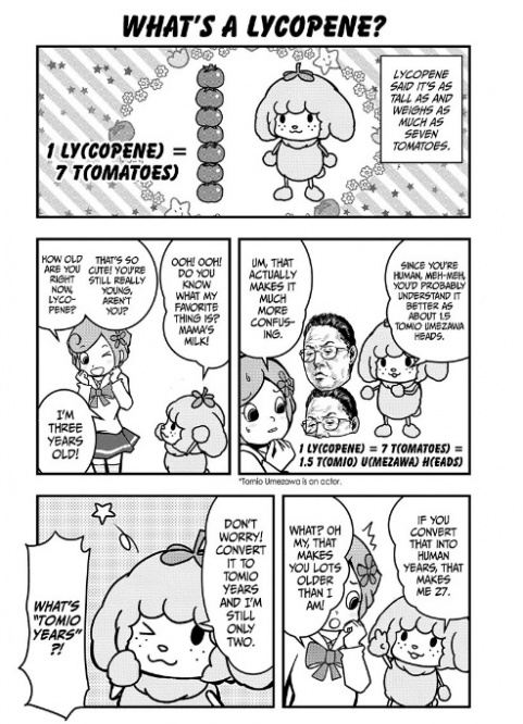 “Lycopene the Tomatoy Poodle” is probably the most not me story I’ve read since I started reading “Shonen Jump.” “Lycopene” is a sugary sweet story that introduces us to the titular Lycopene, a poodle grown from a tomato plant. Lycopene lives in Cuteopia, which is basically a sort of enchanted forest full of cute and sweet animals. A young girl named Meh-Meh ends up in Cuteopia and meets Lycopene and goes on adventures with her.