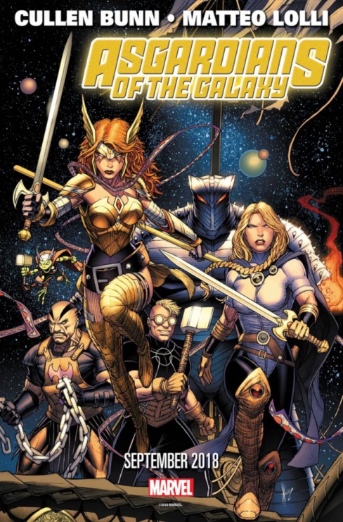 After releasing a teaser image yesterday, Marvel has officially announced “Asgardians of the Galaxy,” a relaunch of “Guardians of the Galaxy” that’s spinning out of the upcoming “Infinity Wars” event. The series, written by Cullen Bunn (“The Damned,” “Harrow County”) with artist Matteo Lolli (“Deadpool”), will follow the team of Angela, Valkyrie, Thunderstrike, Throg, Skurge, and the Destroyer (with an unknown pilot) as they “protect the Marvel Universe from intergalactic threats.”