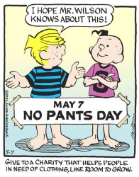 The scale of the No Pants Day initiative will be seen on May 7 with the strips’ daily publications.