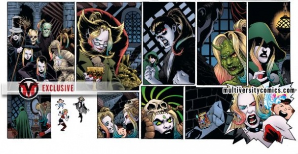 On Wednesday, “Harley Quinn” #50 will hit comic shops. The oversized ‘anniversary’ issue will feature a number of iconic artists from DC’s stable, playing around not just with Harley, but with the larger DC Universe and even the Multiverse. This is due to the presence of Jonni DC, as well as Harley having, kinda, sorta, broken continuity. Over the next few days, we will be revealing a few of the myriad creators stepping into this issue, written by regular series writer Sam Humphries. Today, we feature the final piece of the issue: legendary horror and Batman artist Kelley Jones!